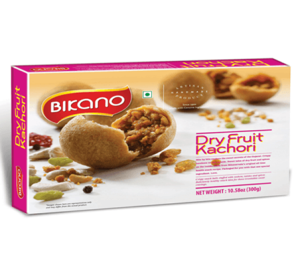 Very special Bikano Dryfruit Kachori is now available at your doorstep. This ready to eat snack are crispy stuffed balls stuffed with spices, herbs, cashewnuts and raisins. Bikano Dryfruit Kachori is healthy,